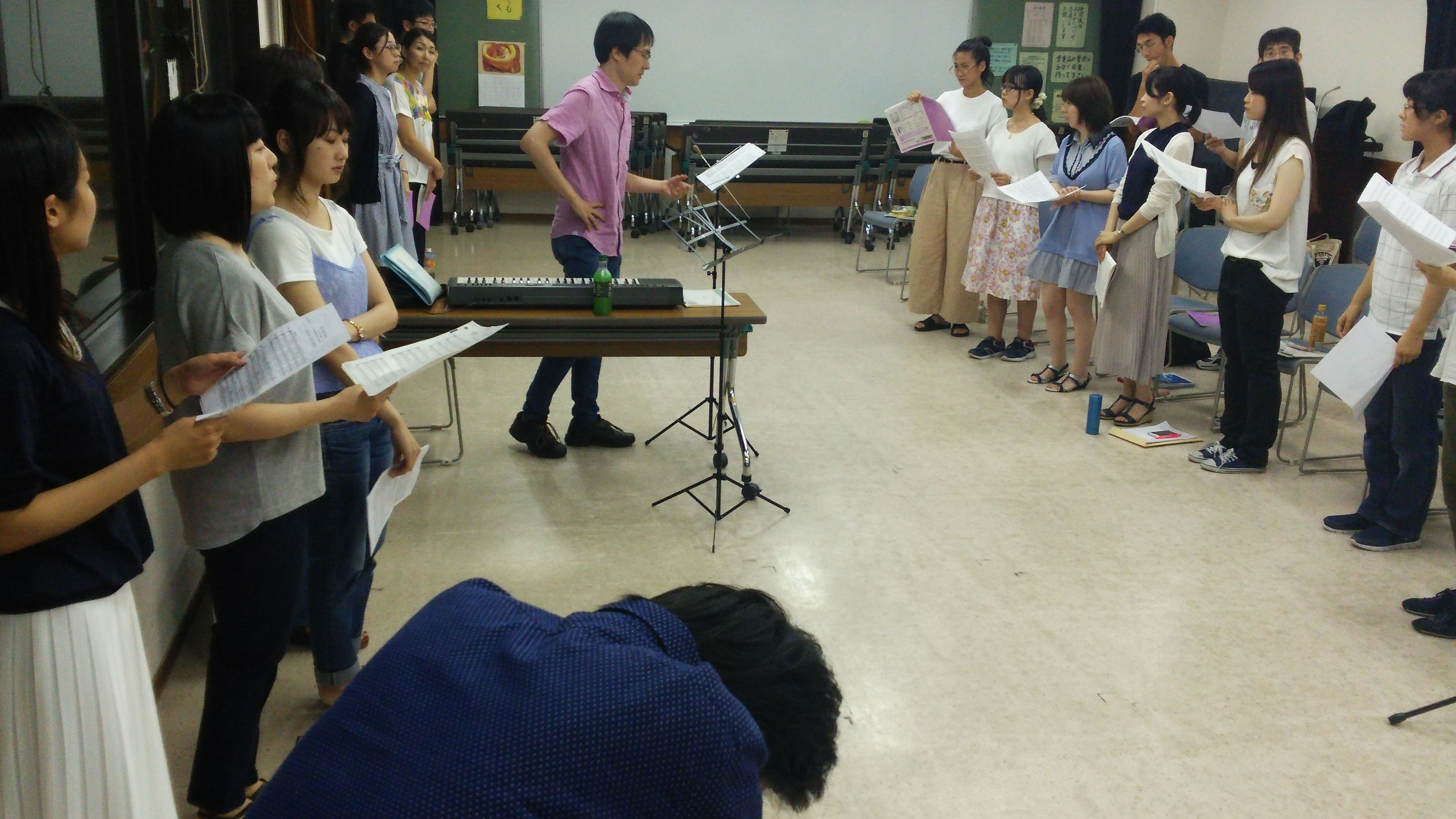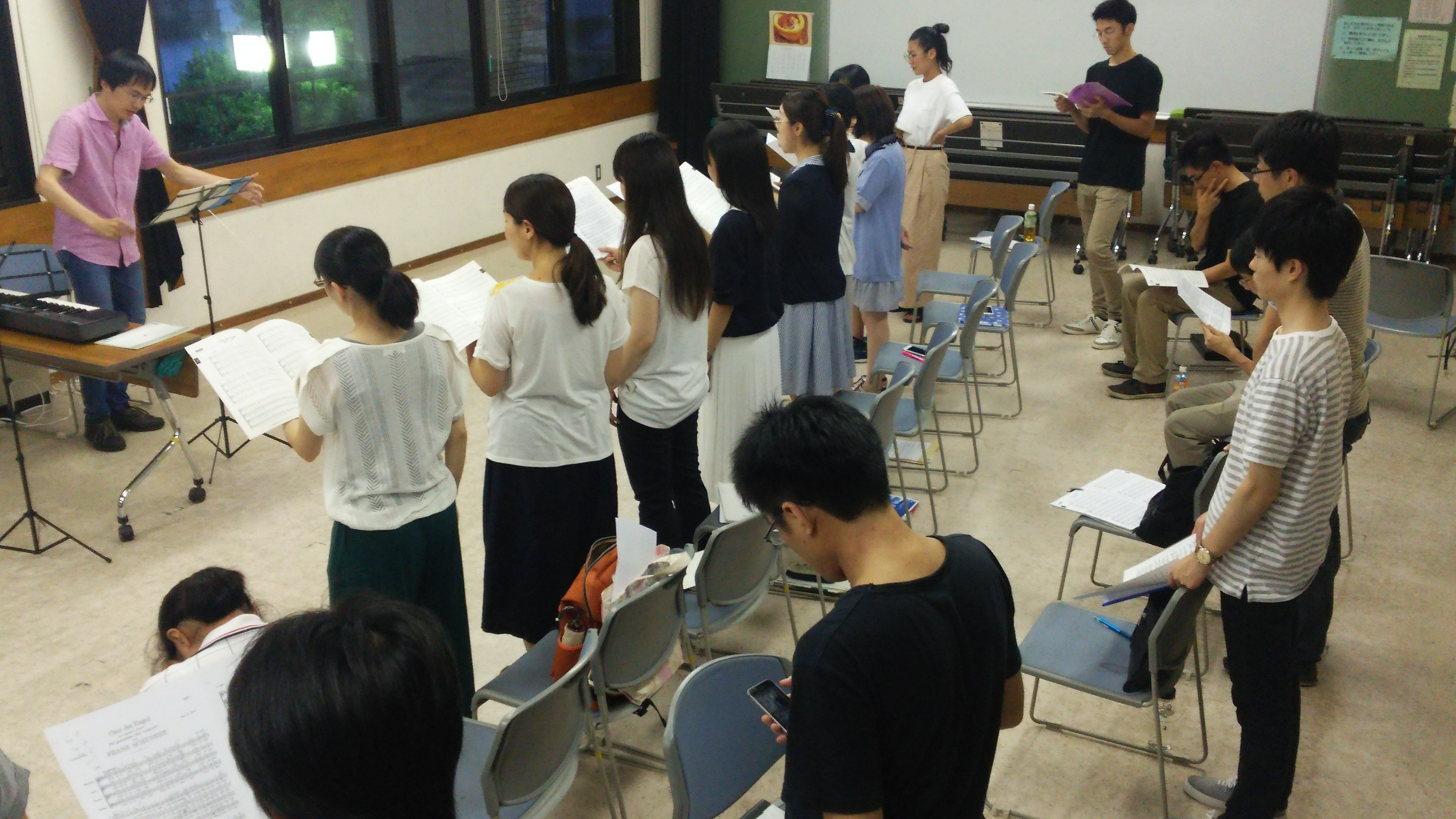 歌い(聞いて)、聞いて(歌い)、パートミーティング、聞いて(歌い)、歌い(聞いて)、パートミーティング、全員。会心のアンサンブルができたと思います。