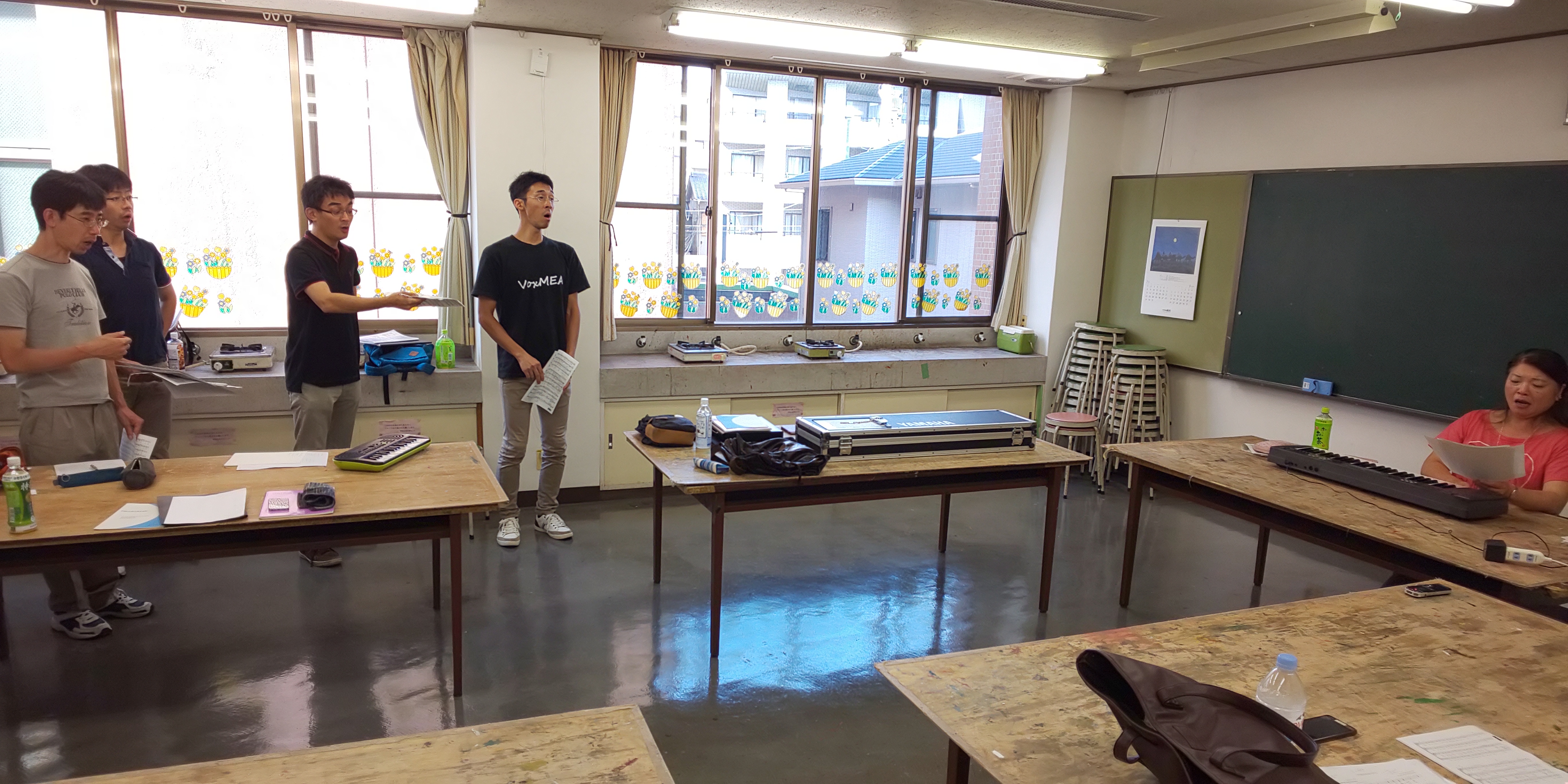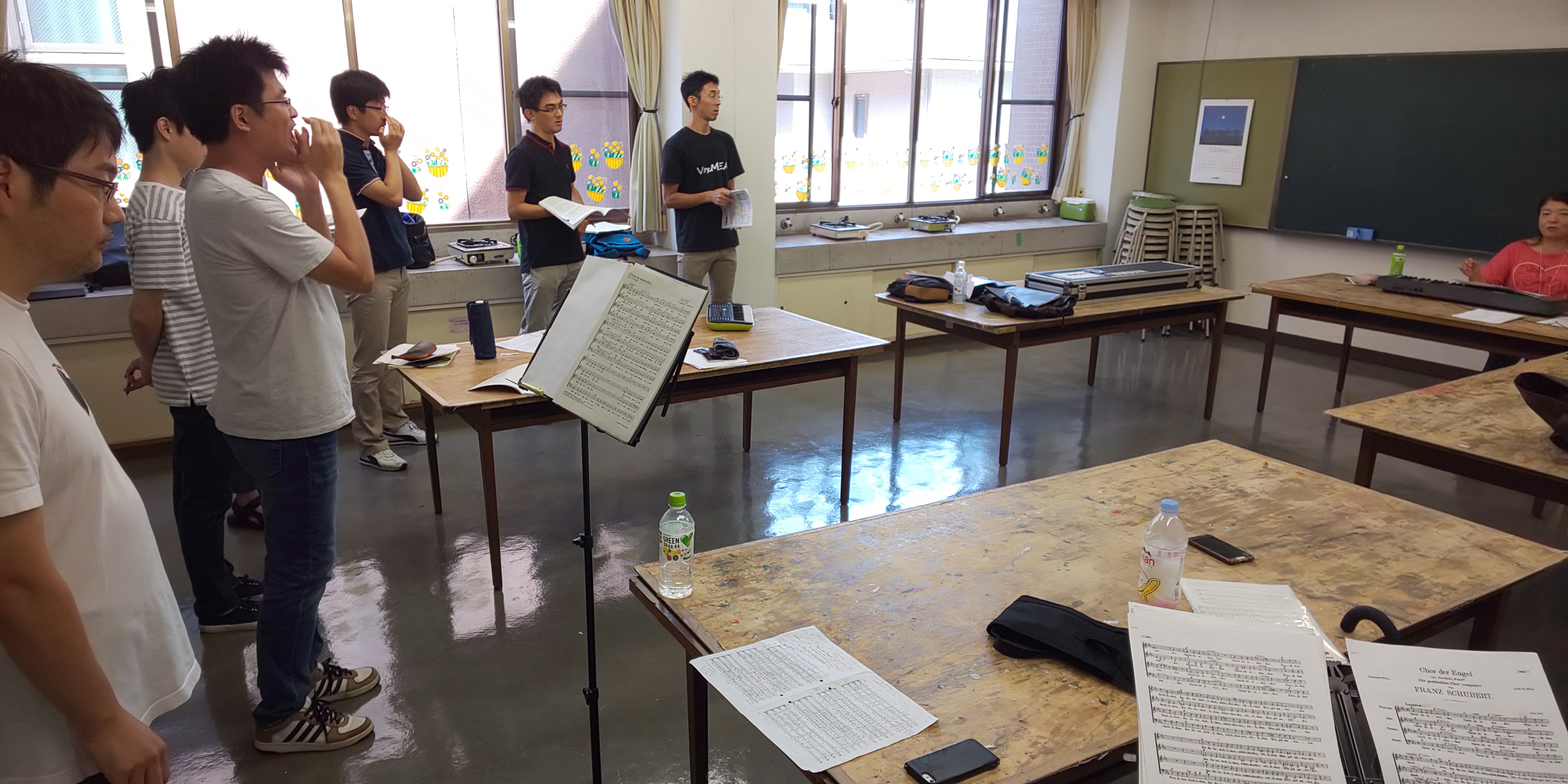 (男声ヴォイトレ2018/7/22) 投稿日時: 2018年7月22日 投稿者: ito 熱い空気の塊を掻き分けて、筆者はバイクで昭和生涯学習センター。 我が合唱団のヴォイストレーナー・三輪陽子先生による男声ヴォイトレ。 「ストーリーを語っていって下さい」 と、あくまで自然体で言葉を喋りましょうと導く三輪先生。 スウェーデン曲は診ていただくレベルになかった…です 写真はベースですが、テノールはパート全員が自責事項として受け止め、まず自立しその上で己の取り組んできたことと技術でもって身を捧げられるかだと思います。