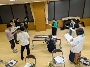 今回の練習は指揮者を前に置かず、県大会の反省でも出たうちの一つ、「意見を言い合おう」練習を行いました。